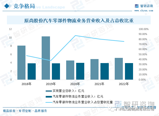 广东原尚物流股份有限公司(简称“原尚股份”或“公司”)是一家专业从事汽车零部件供应链一体化物流的AAAA级物流企业凭借全程供应链一体化管理业务模式,服务的汽车品牌包括广汽本田、东风本田、广汽乘用车、东风日产、广汽三菱、广汽菲亚特、江淮汽车和一汽轿车、一汽大众、长安福特马自达等。2022年原尚股份汽车零部件物流业务营业收入3.94亿元,占总营收的75.78%。